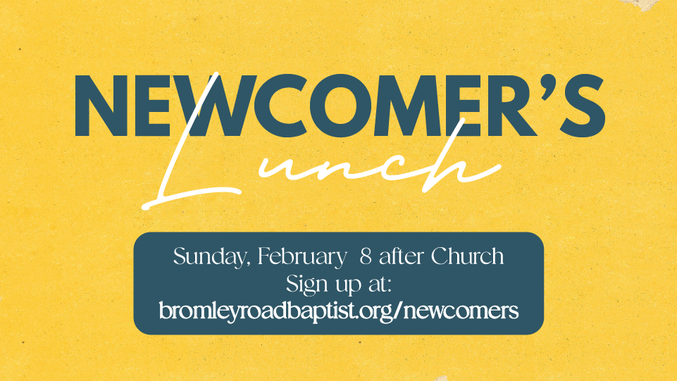 Are you new or newish to Bromley? Join us on Sunday, February 8 following our morning service for a free lunch and to find out more about our church, our beliefs and values, and how you can take your next step. Sign up at the link below to let us know you’ll be there!